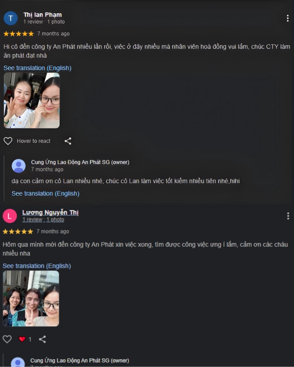 100% nhân viên có lý lịch rõ ràng, giấy tờ đầy đủ