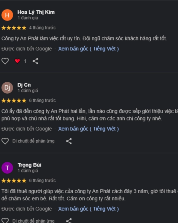 Chúng tôi cam kết sẽ điều phối nhân sự thay thế ngay lập tức (trong vòng 24 - 72 giờ) để đảm bảo công việc nhà của gia đình bạn không bị gián đoạn, dù là lý do gì.