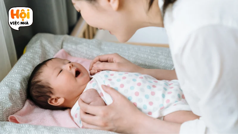 - Dỗ bé ngủ, đặt bé vào tư thế ngủ an toàn.